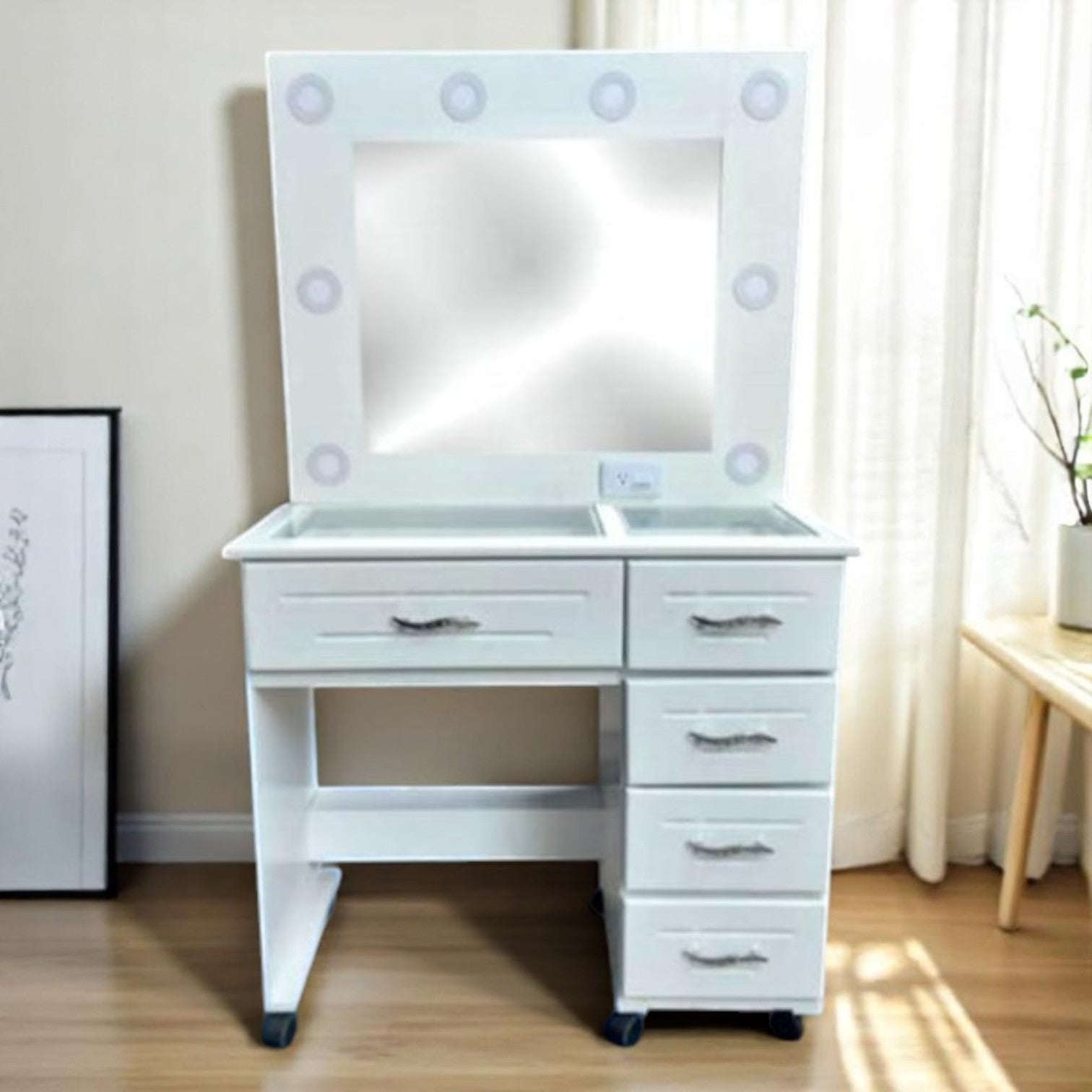 Inspirado en los camerinos de las estrellas, este peinador transforma tu rutina diaria en un momento de lujo. Cada luz, cada compartimiento y cada detalle están pensados para que te sientas como toda una celebridad en tu propio espacio. ¡Luce increíble todos los días!