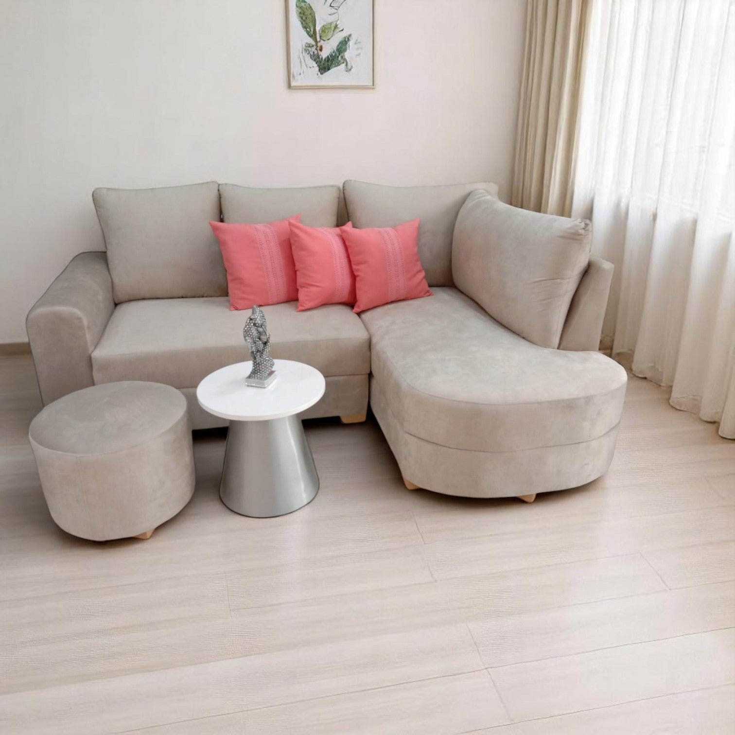 Este sofá en L para sala de estar está diseñado para ofrecer el máximo confort y una estética envolvente. Gracias a su estructura ergonómica, sus materiales de alta calidad y su tapizado amigable con mascotas, se convierte en el centro acogedor de tu hogar.