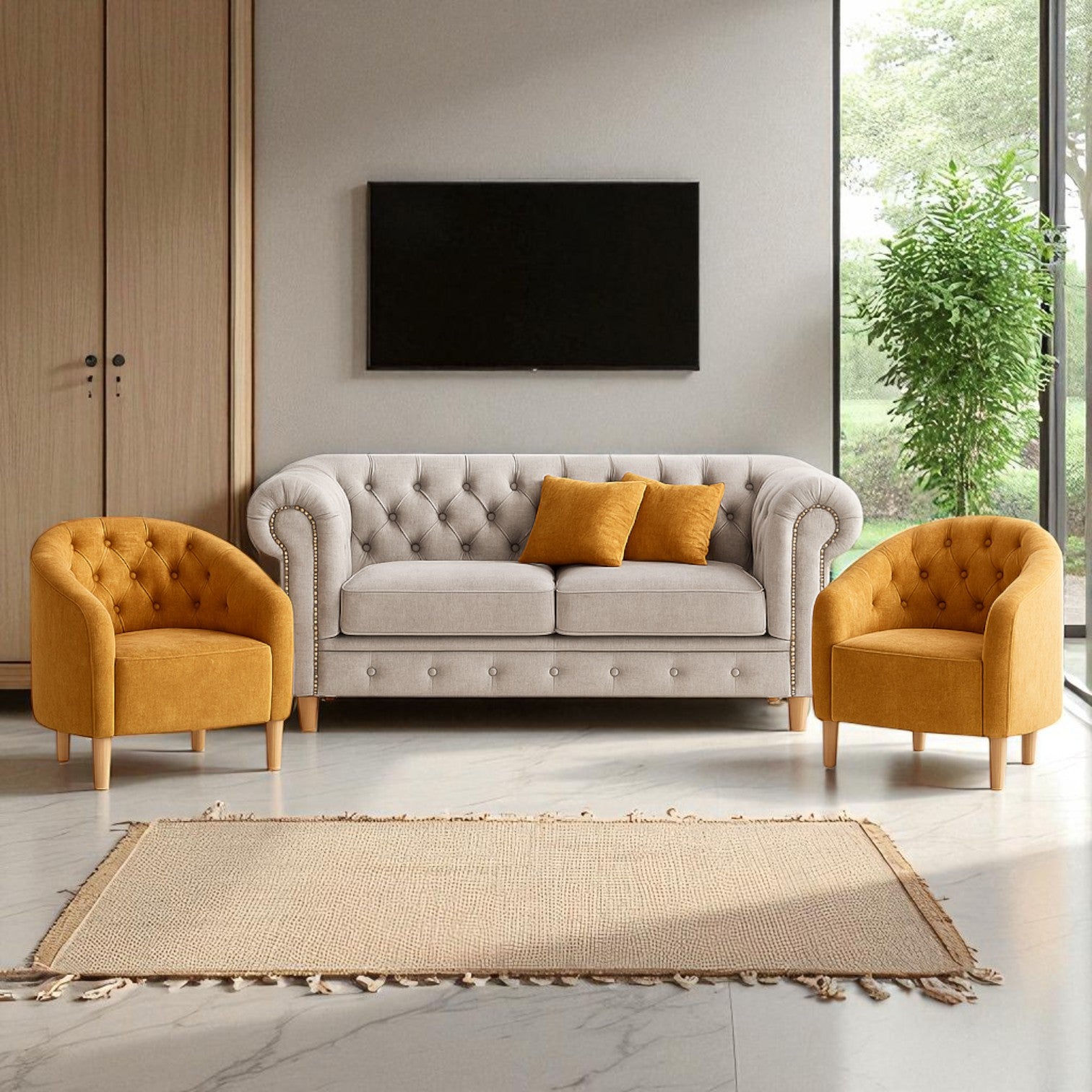 - Diseño capitoneado en el sofá estilo chester que realza la elegancia.