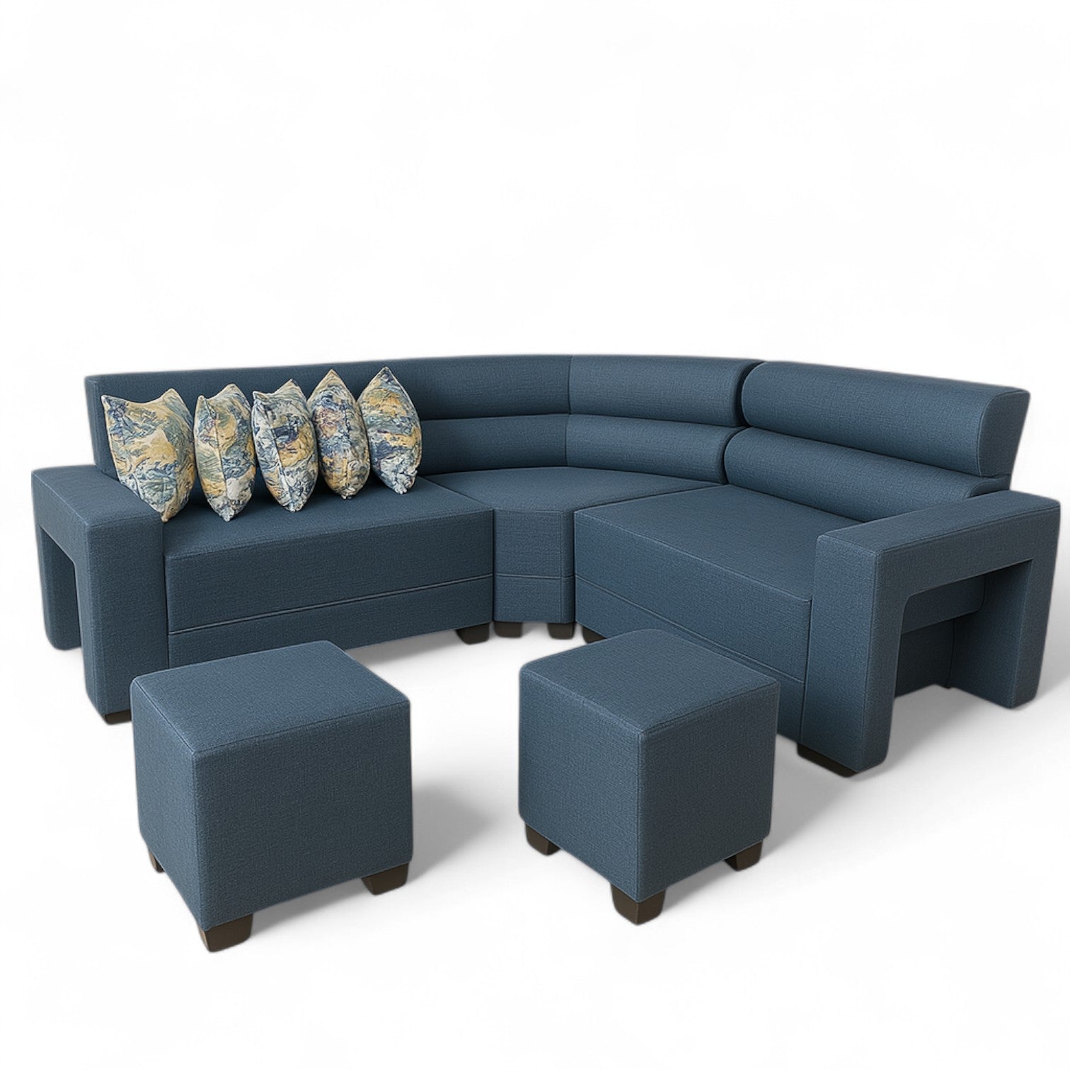 La Sala Riñonera es una propuesta moderna, con un diseño en forma de L que destaca por sus líneas curvas y su estructura robusta. Está tapizada en tela antifluido que facilita la limpieza y garantiza mayor durabilidad. Su espaldar firme junto con la espuma de alta densidad ofrecen una experiencia de descanso y confort inigualable.